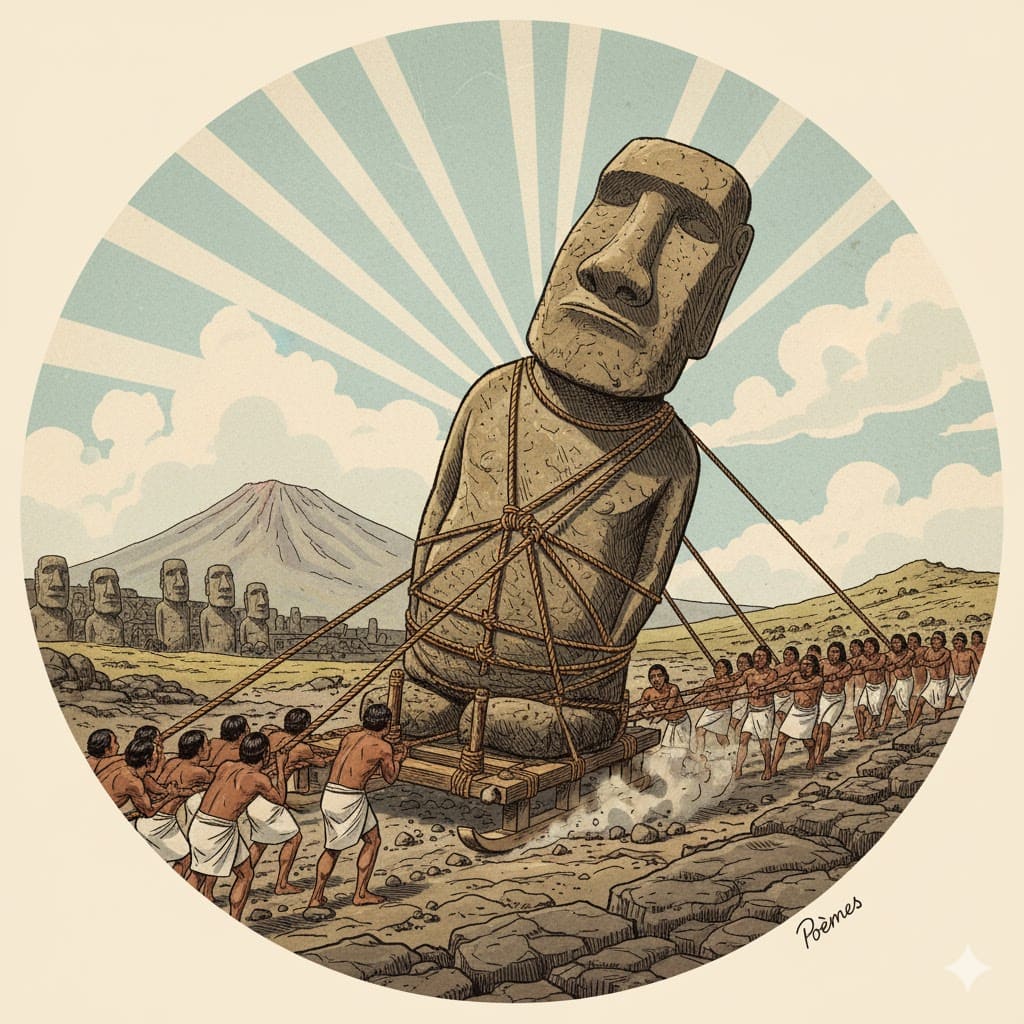Uno de los mayores misterios que rodean a los moáis es su traslado desde la cantera de Rano Raraku hasta los ahu dispersos por toda la isla. Dada su considerable altura, que puede alcanzar los 10 metros, y su peso, que a menudo supera las 10 toneladas, el cómo los antiguos rapanui lograron mover estas moles de piedra ha desconcertado a los arqueólogos durante décadas.