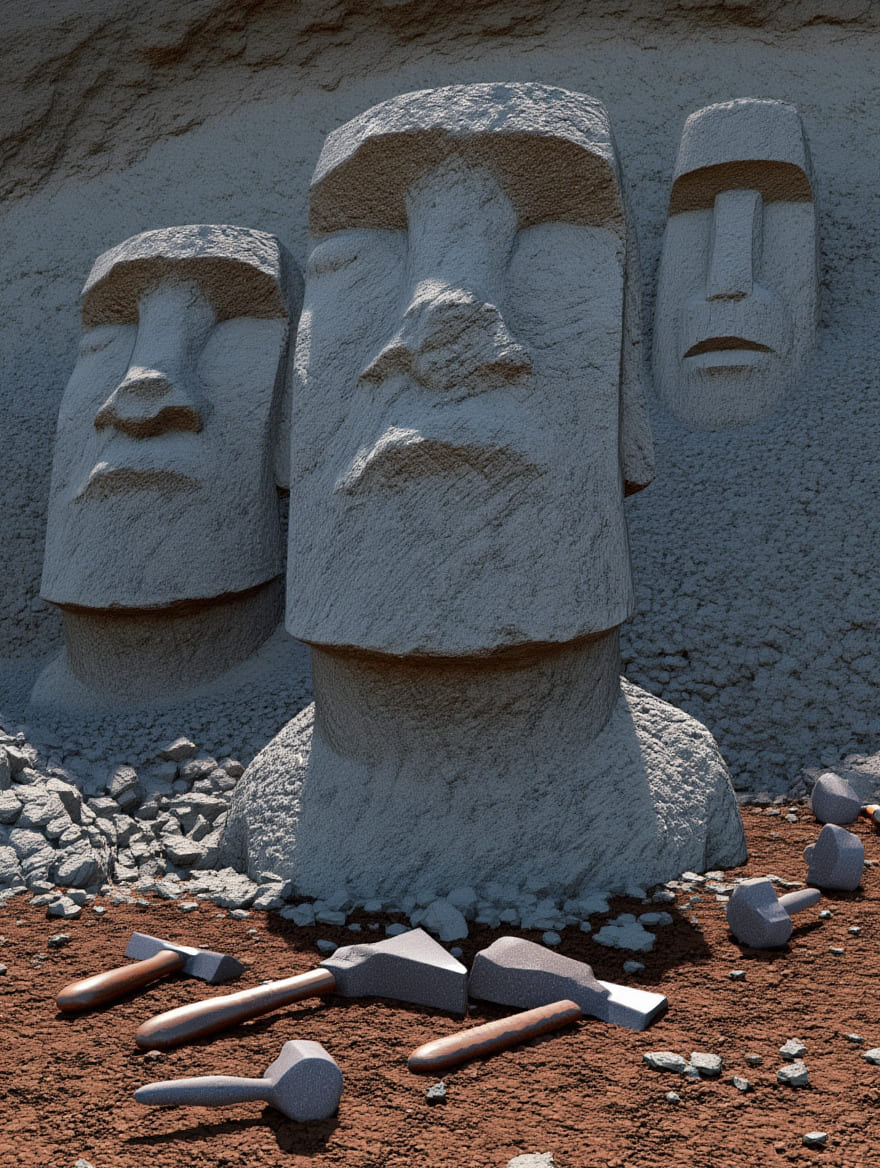 El período de apogeo de la construcción de moáis, entre 1500 y 1600 d.C., coincide con una época de intensa competencia entre las tribus. Esta rivalidad se reflejó en el creciente tamaño y peso de las estatuas, culminando en gigantes como el Moái Rano Raraku, de 10 metros y 270 toneladas, que quedó inacabado en la cantera.