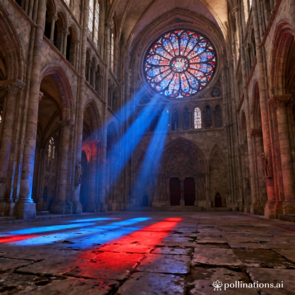 Aquí es donde entra la magia de los vitrales. Si observas con atención, notarás que las vidrieras góticas no son meras ventanas; son transformadores. La luz blanca del sol (la realidad cruda) golpea el vidrio y es transmutada en colores saturados, en gemas líquidas. Este proceso no es accidental. Simboliza la transformación del espíritu. La luz exterior es la naturaleza profana; la luz interior, teñida de azul cobalto y rojo rubí, es la naturaleza sacralizada.