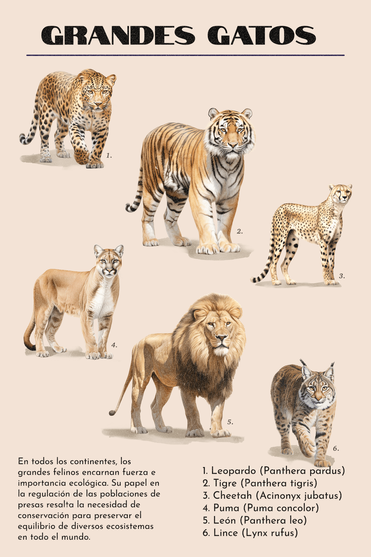 Los grandes felinos han fascinado a la humanidad desde tiempos inmemoriales. Desde las majestuosas leonas cazando en las llanuras africanas hasta los sigilosos jaguares de las selvas sudamericanas, estos magníficos animales han sido símbolos de poder, misterio y belleza en diversas culturas alrededor del mundo. Sin embargo, más allá de su presencia imponente y su lugar en el folclore, los grandes felinos desempeñan un papel crucial en los ecosistemas que habitan, manteniendo el equilibrio natural y apoyando la biodiversidad.