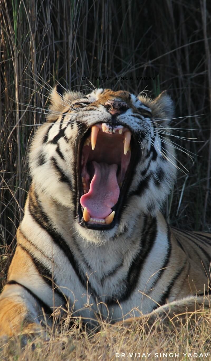 Dientes: Los tigres poseen una poderosa dentadura compuesta por 30 dientes, incluyendo caninos largos y afilados que les permiten matar a sus presas de un mordisco. Sus molares son fuertes y aserrados, ideales para masticar carne y huesos.