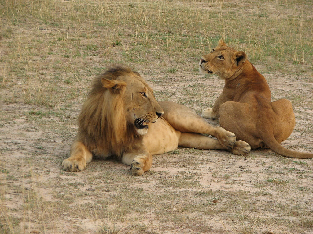 Dimorfismo sexual: Los machos son más grandes y pesados que las hembras, y tienen una cabeza más grande y una corta melena alrededor del cuello. Las hembras, por otro lado, son más delgadas y ágiles, lo que les permite ser mejores cazadoras en entornos densos.