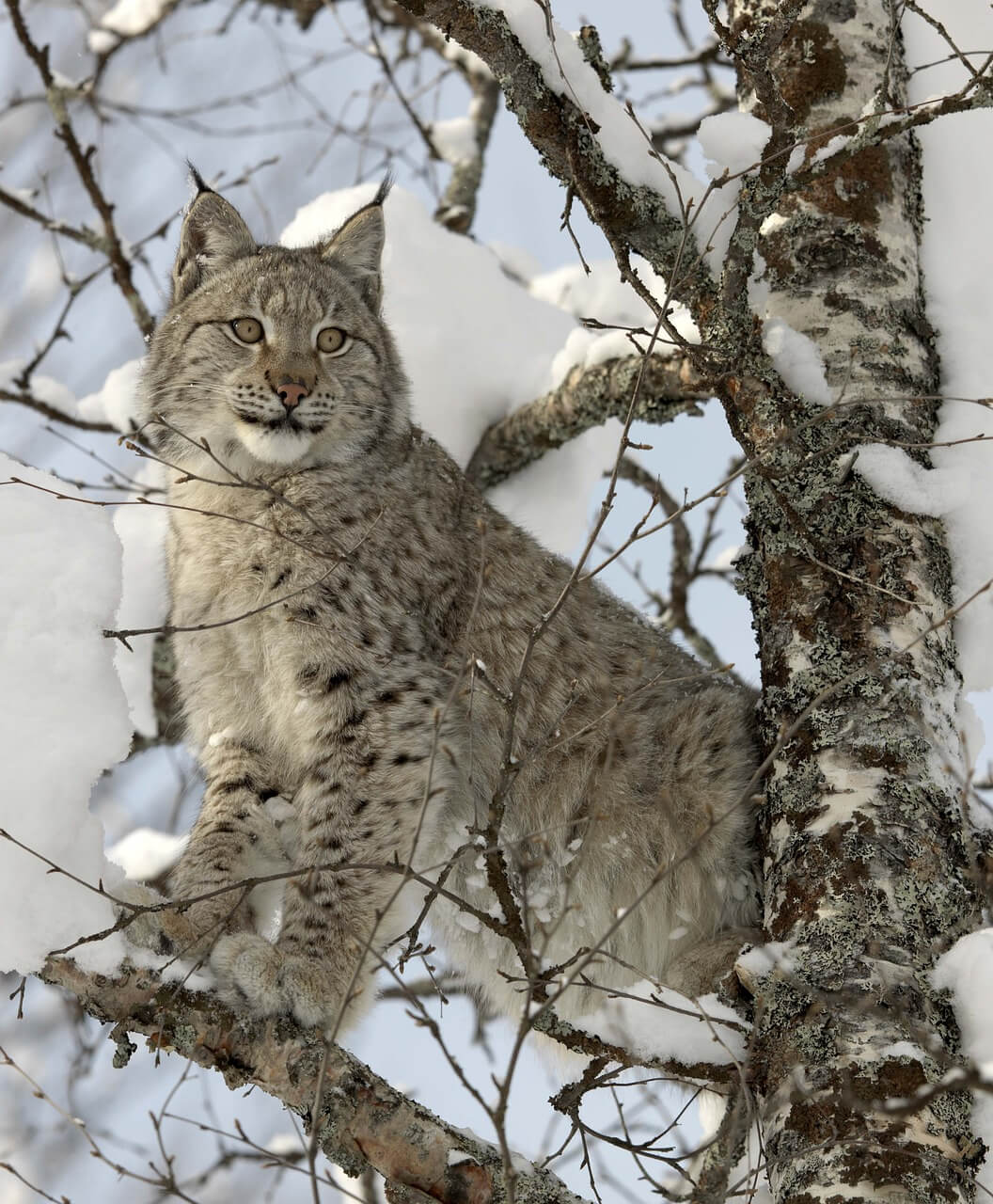 El lince canadiense sigue una estrategia similar, pero su gran tamaño de patas le permite moverse con mayor facilidad en la nieve profunda, lo que le da una ventaja en su entorno boreal. Además, estos linces tienden a ser más pacientes, esperando en silencio a que las liebres se acerquen lo suficiente para lanzar su ataque.