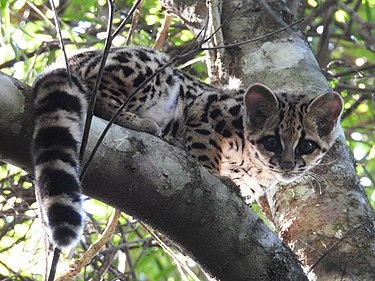 El margay (Leopardus wiedii), también conocido como maracayá, yaguatirica, caucel o gato tigre o tigrillo, es una especie de mamífero carnívoro de la familia Felidae ampliamente distribuido por América, desde México hasta el sur de Sudamérica. Esta especie puede confundirse con el ocelote. Sin embargo, el ocelote tiene un tamaño y un peso mayores (Wikipedia).