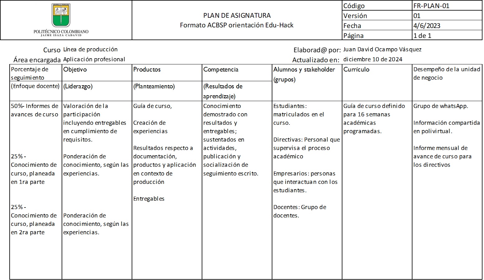 2. La gestión de la producción con enfoque sistémico documentado en 1.2 es articulado en entornos de manufactura y la línea de producción aplicando filosofía lean, formalizado por la ruta lean que cada proyecto requiere proponer, modelar o aplicar.