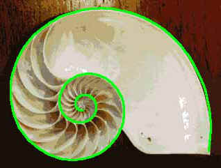 Durante muchos siglos esta curva ha estado asociada con el crecimiento natural de los seres vivos y desde un punto de vista estático con la idea de armonía. Su construcción se realiza partiendo de un rectángulo áureo de lado mayor a y lado menor b=a/F. Construimos un cuadrado de lado la medida del lado mayor del rectángulo y lo adosamos al lado mayor obteniándose un nuevo rectángulo áureo de lado mayor a+b, en el cual volvemos a pegar un cuadrado y así continuamos la construcción de manera iterativa. Uniendo dos vértices opuestos de los sucesivos cuadrados con un arco de circunferencia obtenemos la espiral deseada..... |