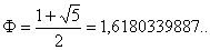 2.-Demuestra que con esta construcción obtenemos un rectángulo áureo. Para ello has de comprobar que el cociente entre el lado mayor y el menor es el número de oro. Ayuda: En este caso si divides el lado mayor que es AE+ EB por el lado menor obtienes directamente el número áureo. Tienes que tener en cuenta que el número áureo tiene la siguiente expresión.