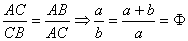 2.-Demuestra que utilizando esta construcción el segmento AB queda dividido en proporción áurea en dos segmentos AC y BC. Para ello hay que probar que la relación entre los segmentos AC y BC, de medidas a y b respectivamente, es