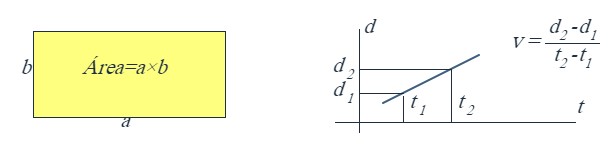Para encontrar el área de una figura rectangular, basta medir dos de sus lados y multiplicar los valores obtenidos. Para encontrar la velocidad de un cuerpo que se mueve con velocidad uniforme, basta medir la distancia que recorre en un tiempo determinado y dividirla entre el tiempo. Esto último equivale a calcular la pendiente de gráfica de la posición del cuerpo con respecto al tiempo, que es una línea recta.