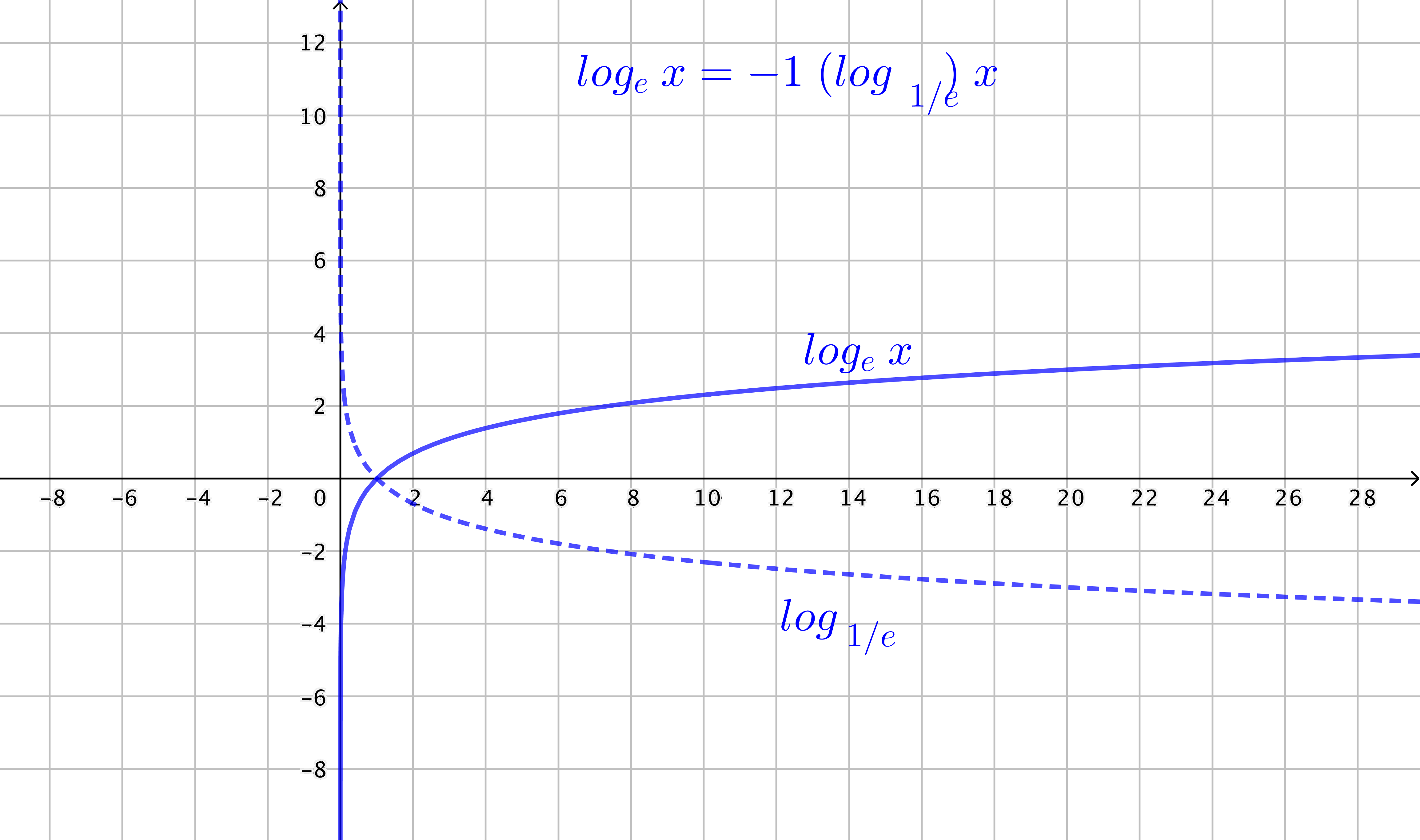 Como hemos dicho $e$ es un cruce de caminos: la función exponencial en base $e$, $\small{y = e^x}$, adquiere la propiedad especial de ser igual a su derivada. Los logaritmos en base e resultan ser los logaritmos naturales, que se obtienen integrando la hipérbola x · y=1.