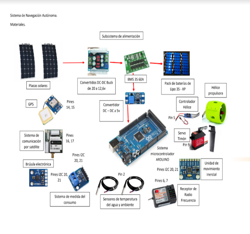 El sistema de navegación autónoma está compuesto por múltiples subsistemas que trabajan en conjunto para proporcionar capacidades de navegación, propulsión, comunicación y gestión energética.